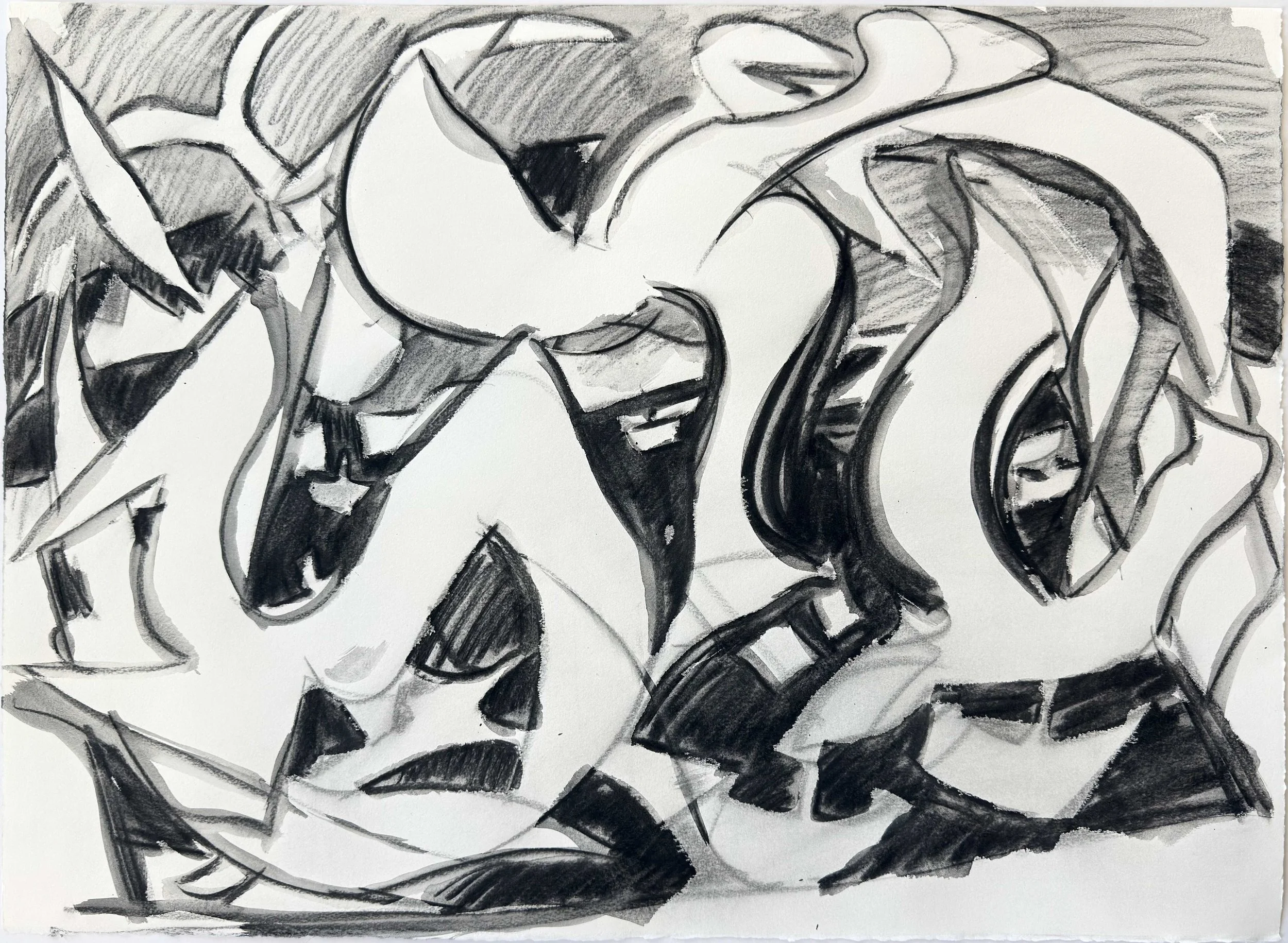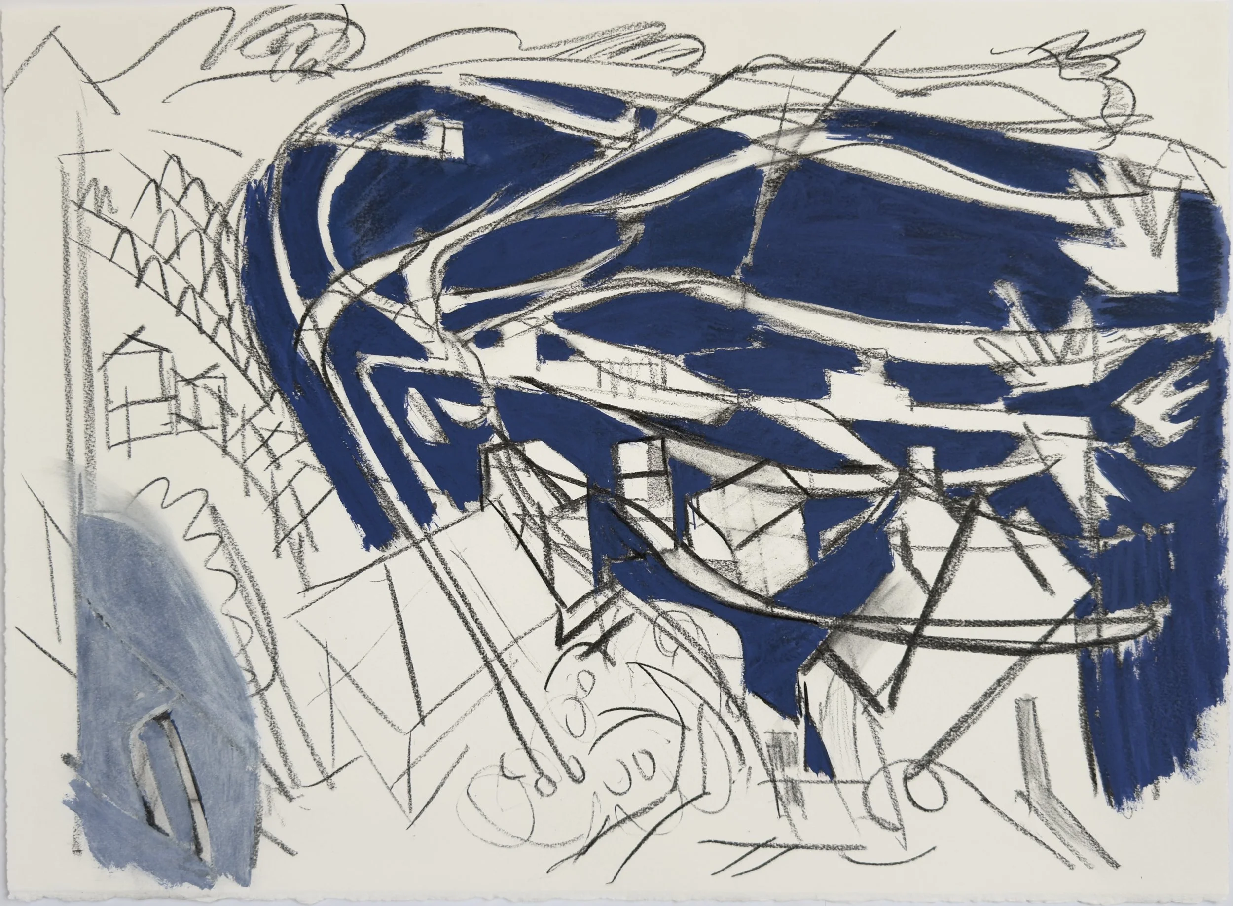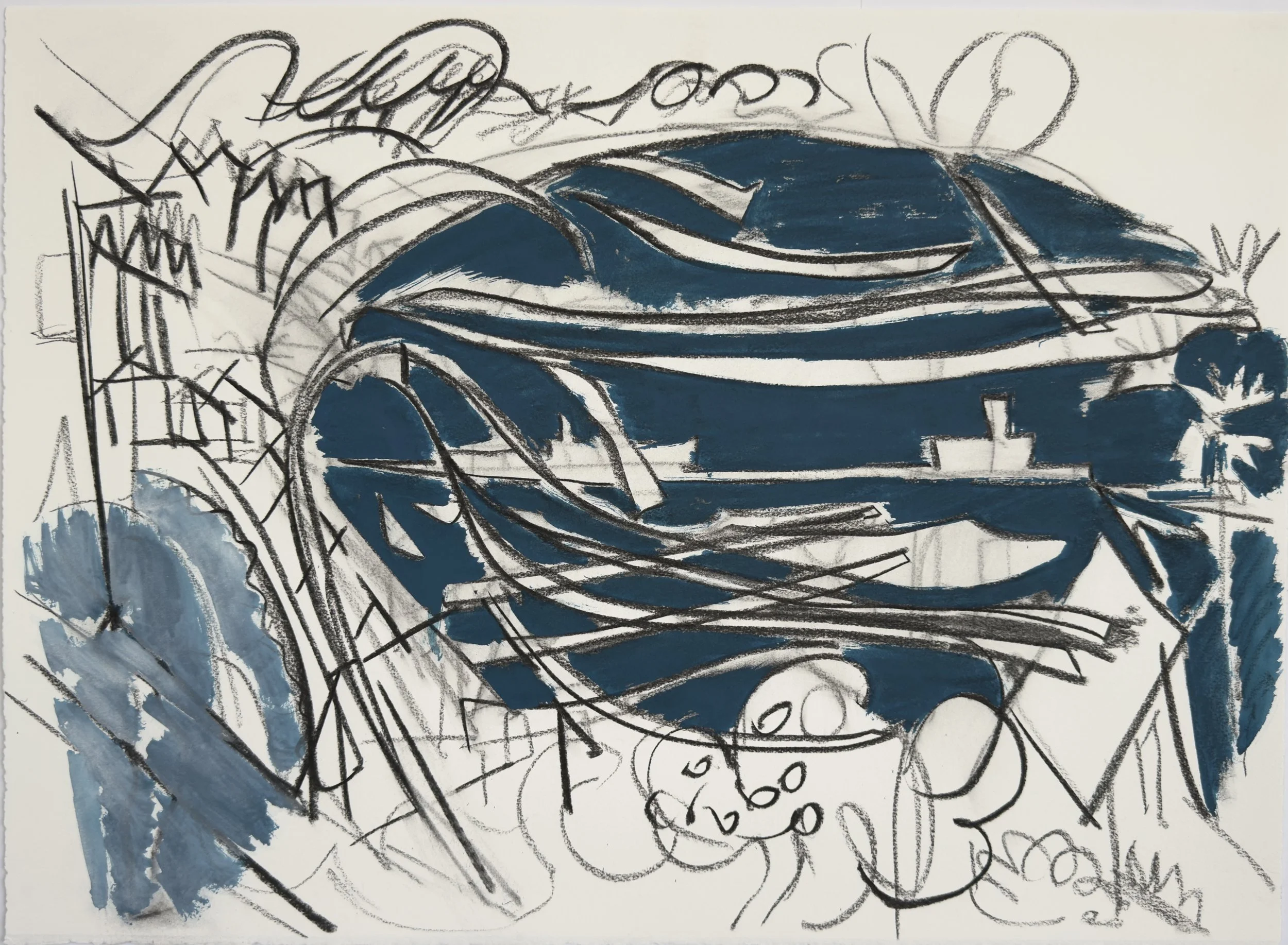 Penzance, 2025, charcoal and acrylic on paper, 55 x 77 cm