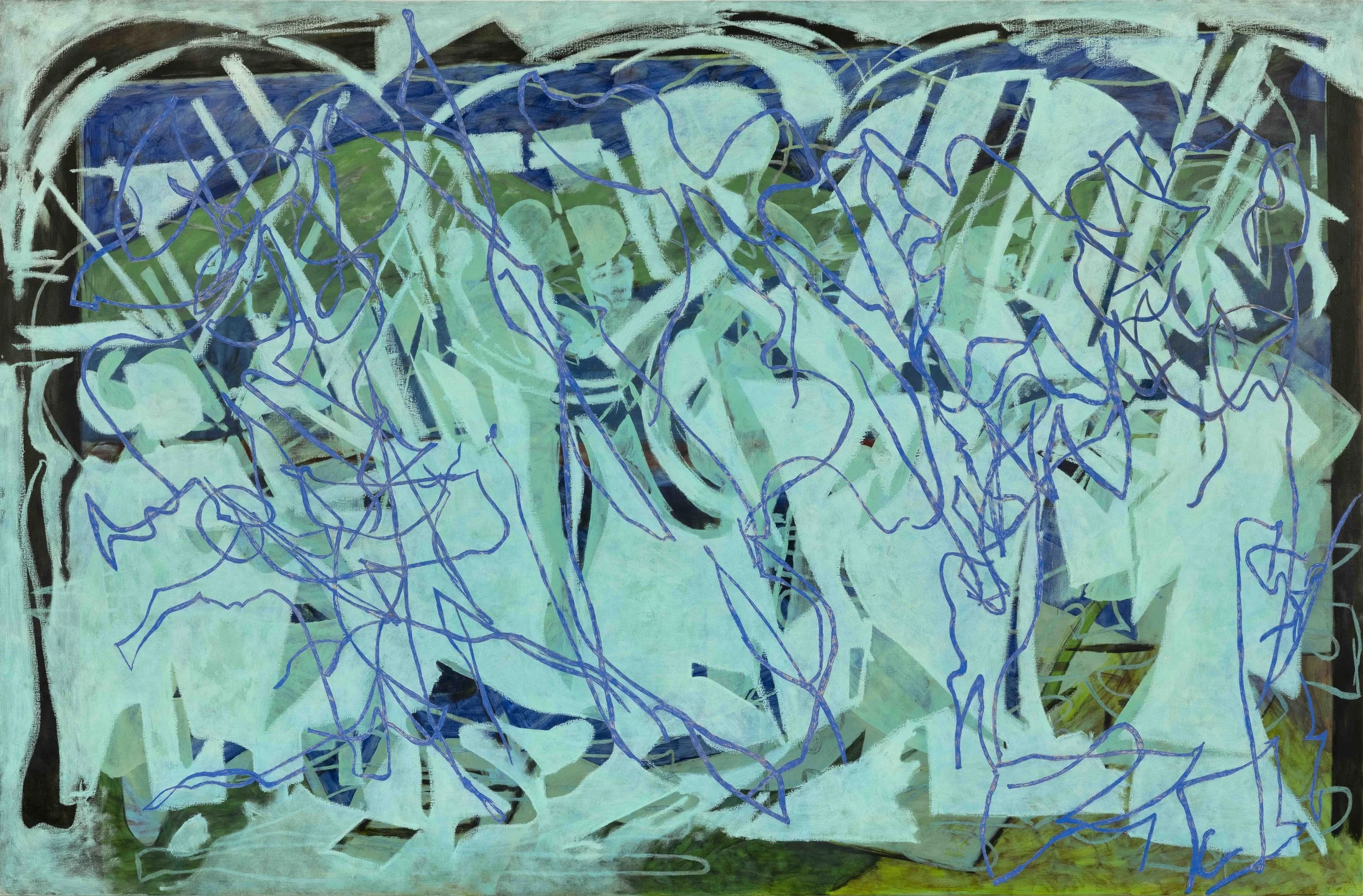 Reflection (caribbean blue), 2021-24, oil and gouache on linen, 204x313cm