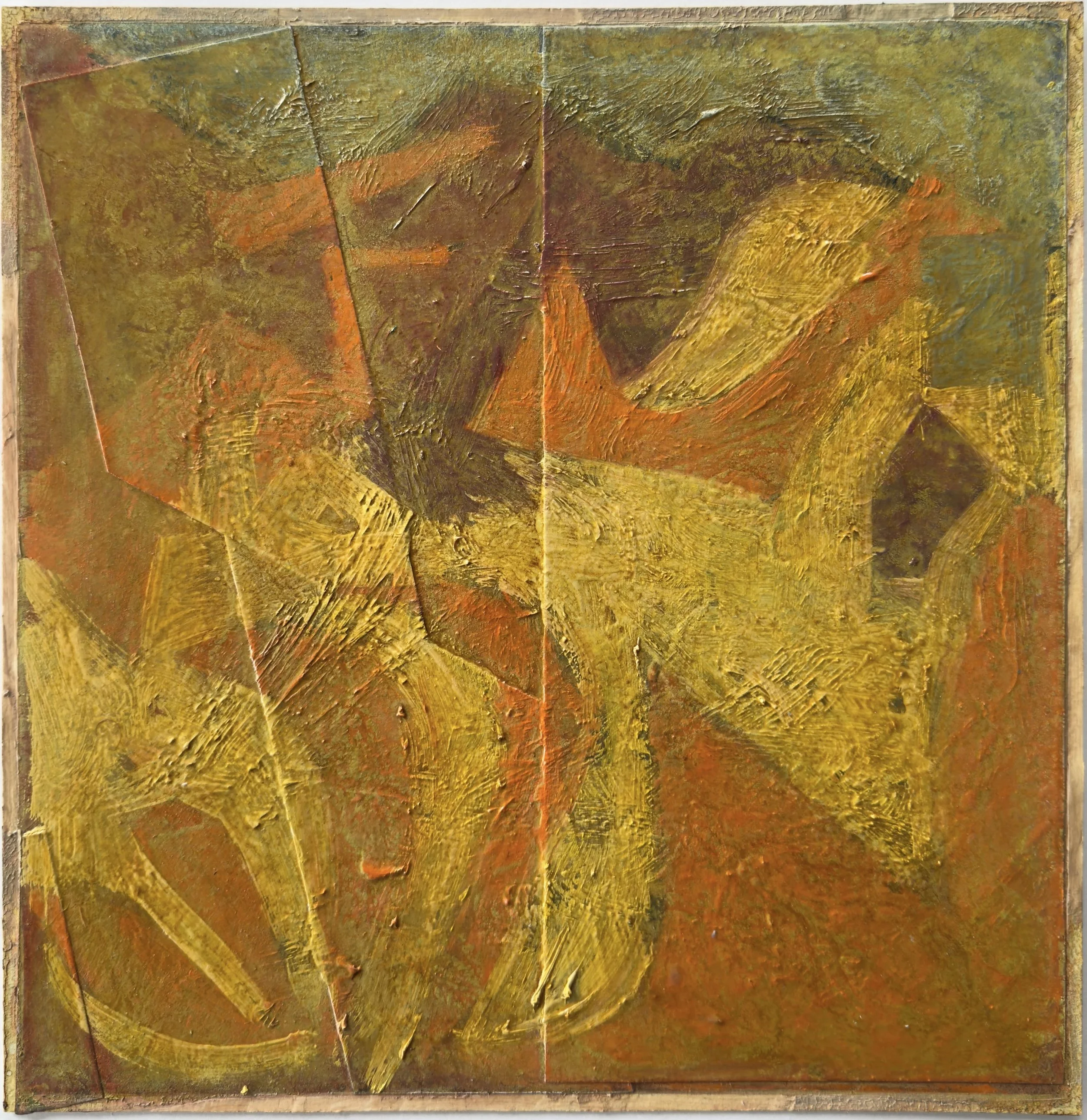 Evening, 2018-2025, oil and collage on panel, 35 x 34.5 cm
