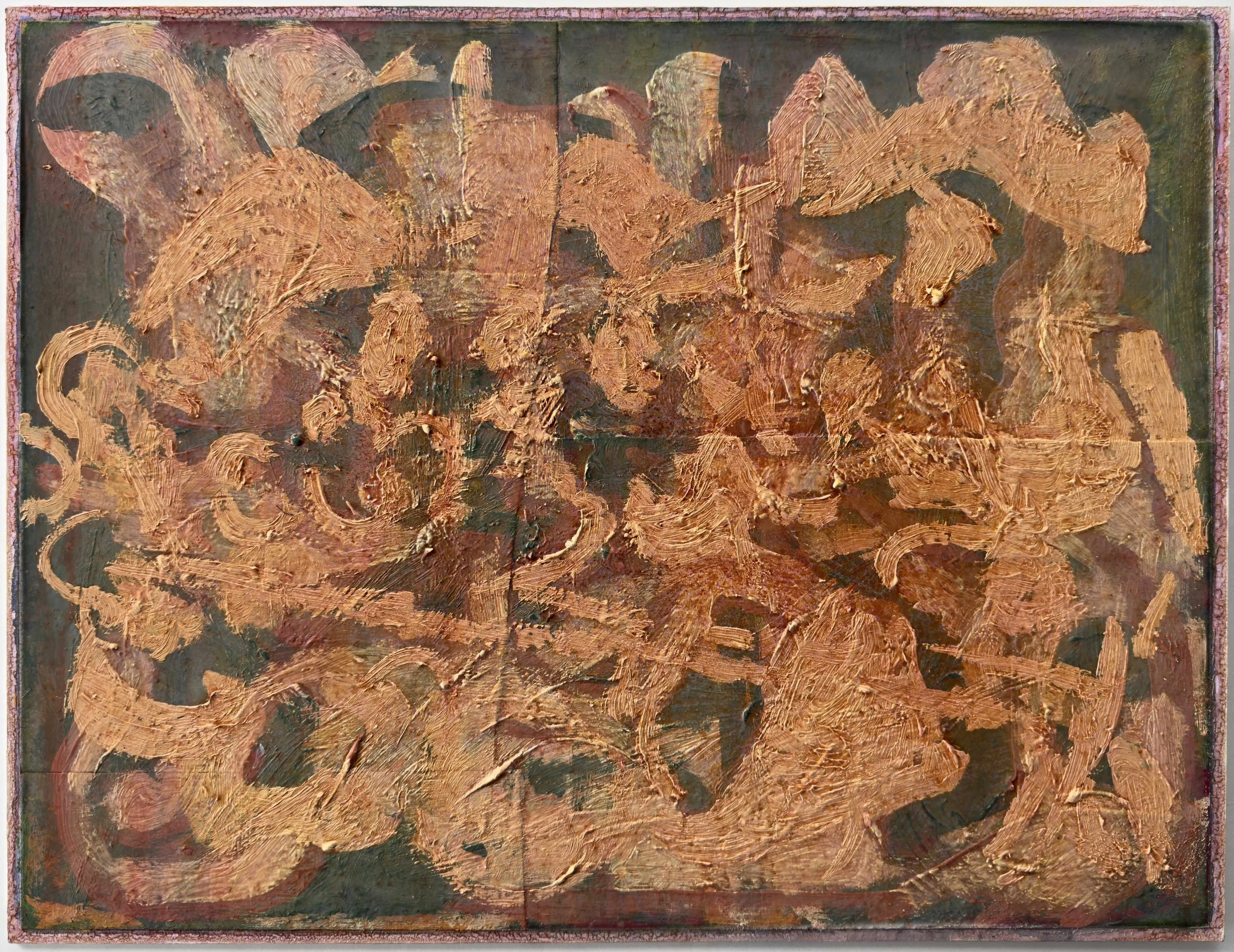 Pollen, 2018-2025 oil and collage on panel 31 x 38.5 cm