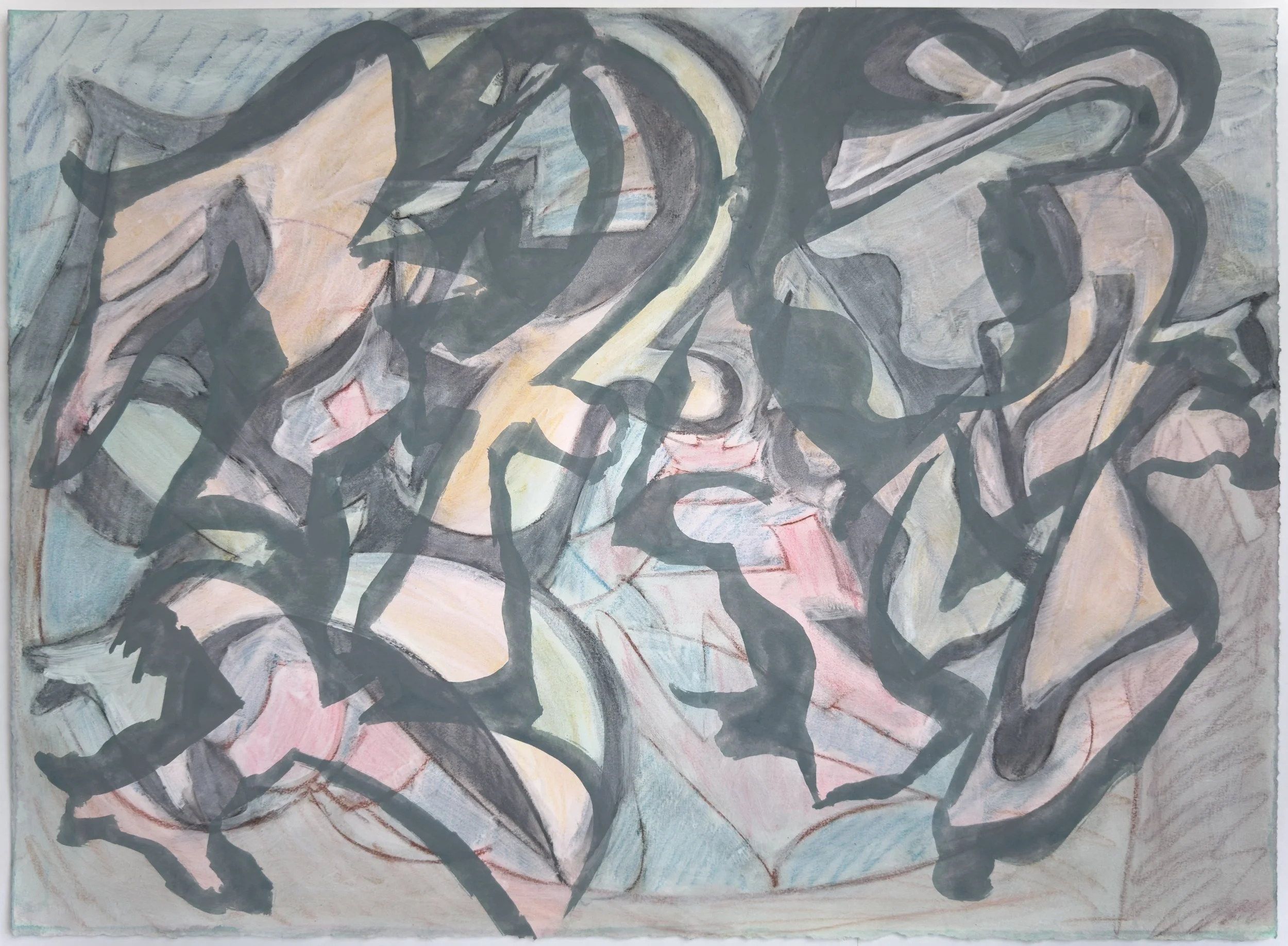 Penzance, 2025, acrylic and pastel on paper, 55 x 77 cm